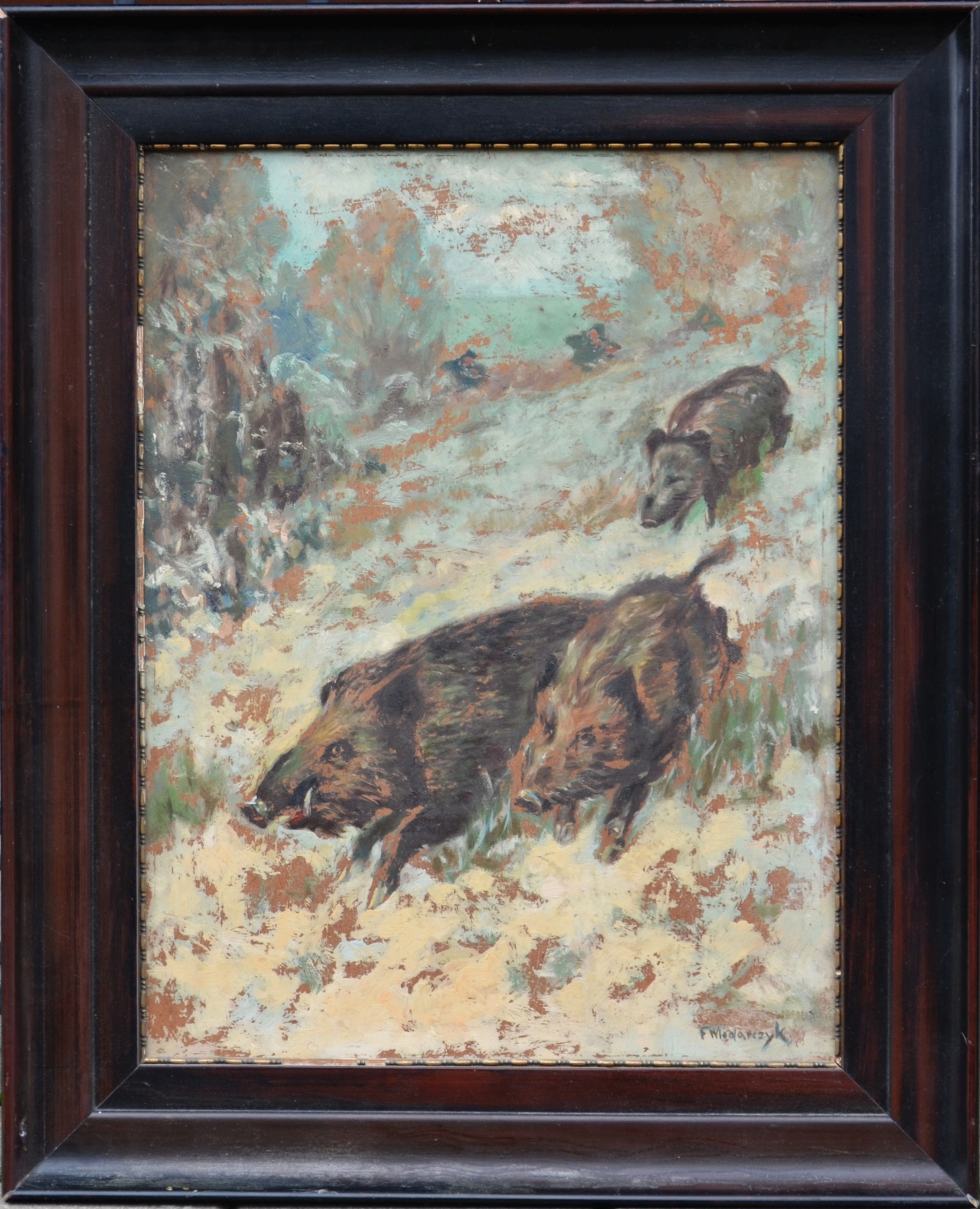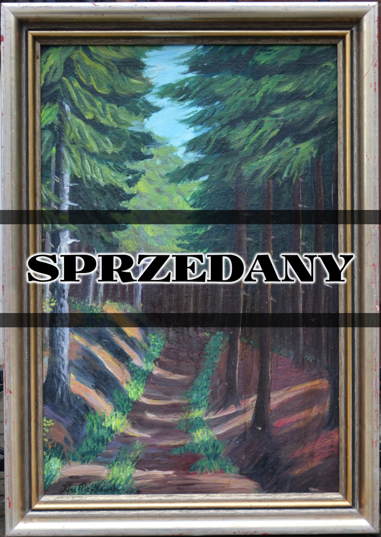 Ignacy Pieńkowski - "Pejzaż leśny", olej na desce. Sygnowany w prawym dolnym rogu: "Ign.Pieńkowski". Wymiary: 52x35 cm bez ramy, 61x43 cm z ramą.