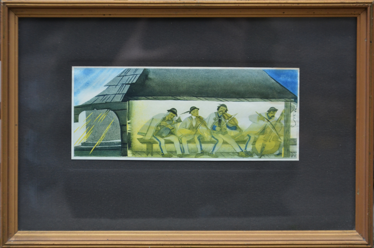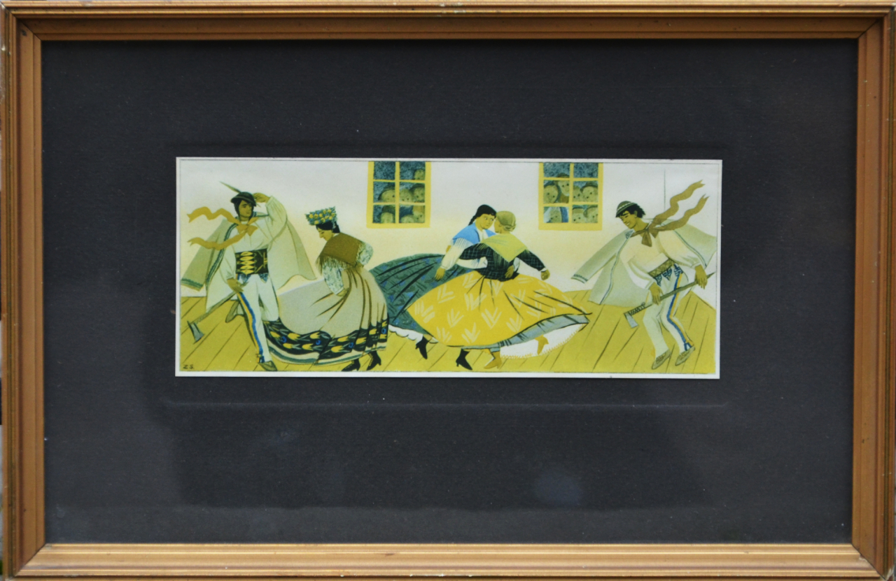Zofia Stryjeńska - "Taniec" - praca z teki "Lwów 1933 Muzyka Podhala". Wymiary z oprawą: 32x21,5 cm, bez oprawy: 19,5x7,5 cm. Oryginalna oprawa. Cena: 300 zł.