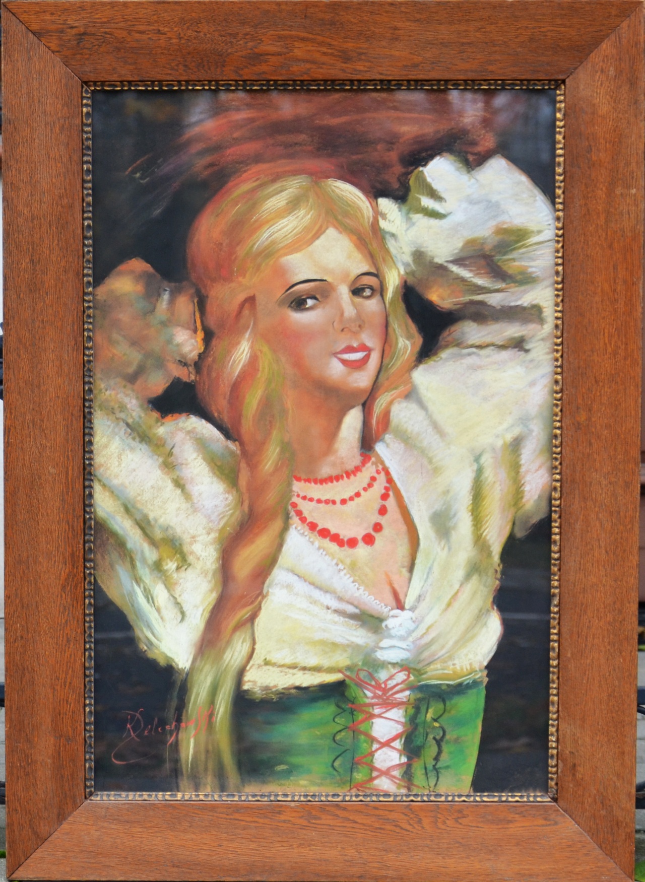 Kasper Żelechowski - "Krakowianka", pastel na kartonie, wymiary z ramą: 86x62 cm, bez ramy: 68,5x44,5 cm. Sygnowany w lewym dolnym rogu. Cena: 1800 zł.