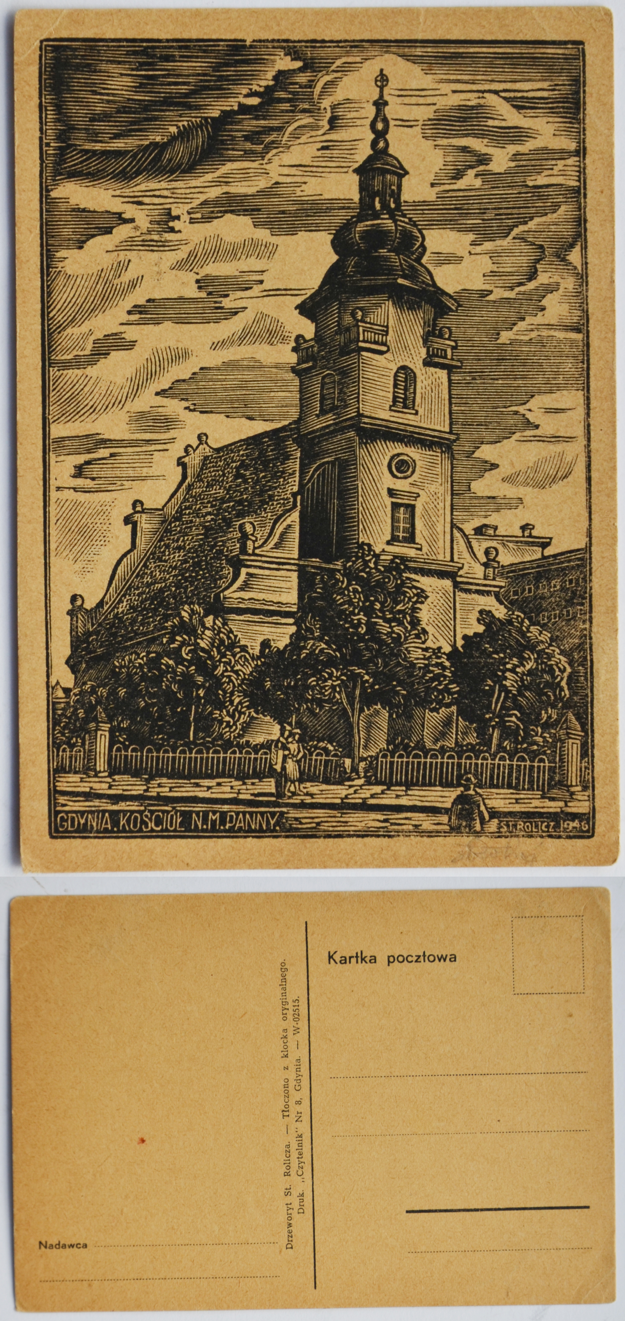Stanisław Rolicz - "Kościół N.M.Panny", kartka pocztowa, sygnowana ołówkiem przez artystę. Wymiar: 15x11 cm. Cena: 100 zł.