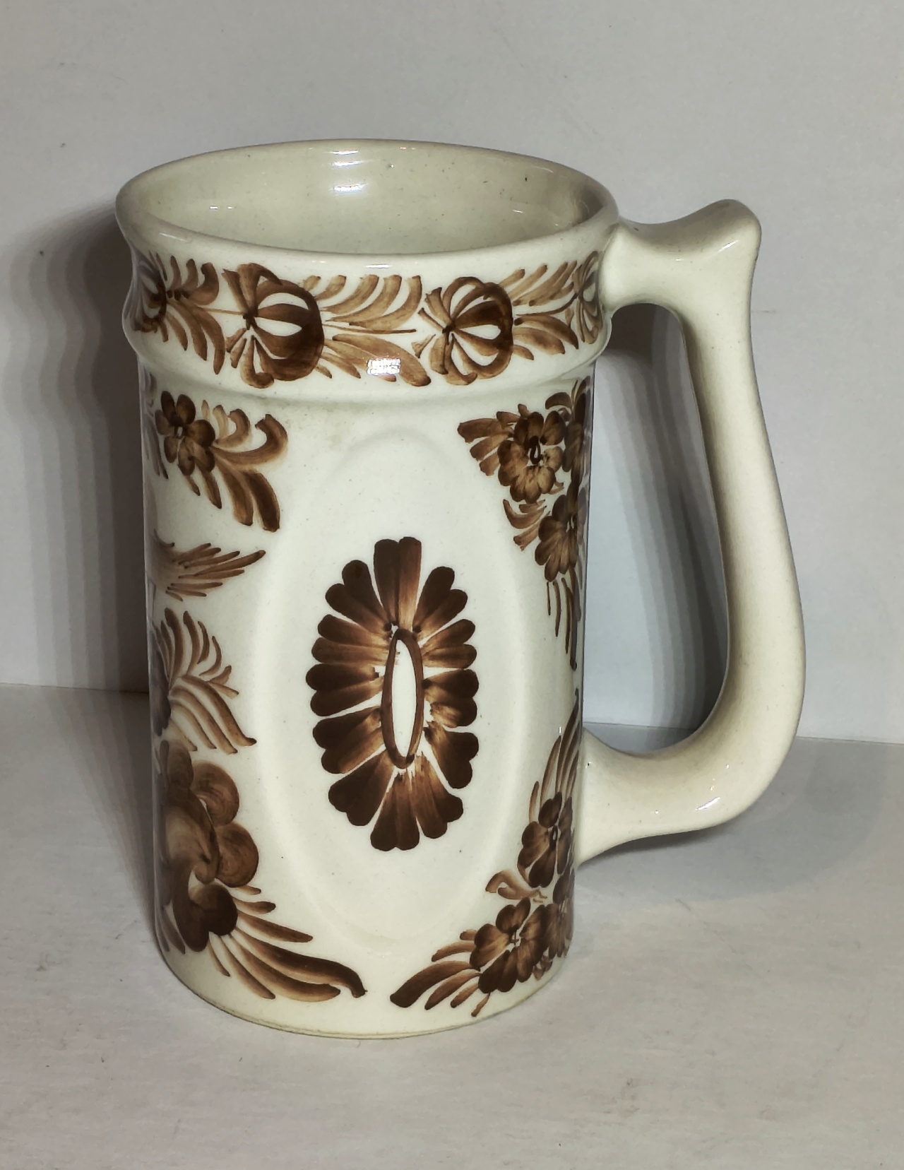 Piękny kufel fajansowy Koło, sygnowany na spodzie. Wzór Kufel 178. Wysokość 15,2 cm, szerokość 9 cm. Stan bardzo dobry. Cena: 35 zł.